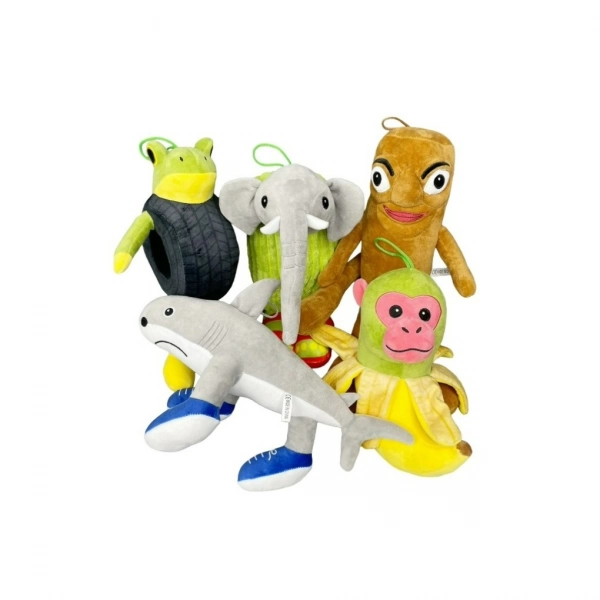 Cada modelo tiene una personalidad distinta: desde tiburón con zapatillas, mono banana, sapo neumático, elefante, y más. Perfectos para quienes buscan un peluche fuera de lo común, moderno y viral.