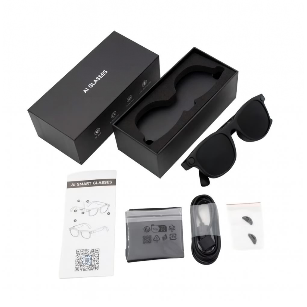 Lentes de sol inteligentes que combinan estilo y tecnología. Incorporan parlantes y micrófono ocultos para escuchar música, atender llamadas y usar el asistente de voz vía Bluetooth. Son livianos, cómodos, resistentes y con batería de larga duración. Incluyen cable de carga, accesorios y estuche. Ideales para usar con manos libres en actividades diarias.