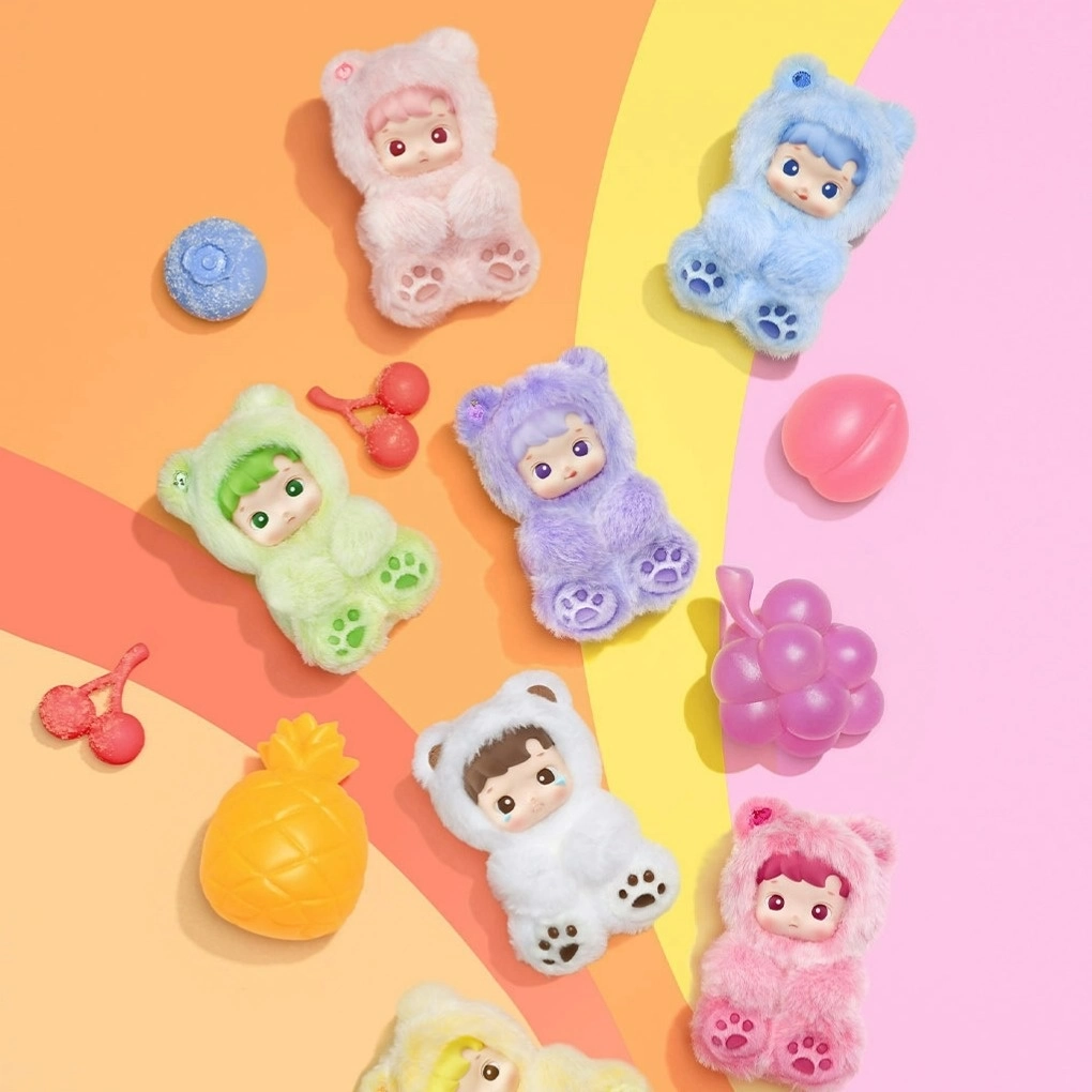 Gummy Bear de Pop Mart llega para enamorar a los coleccionistas con su estilo suave, colorido y aromático. Cada figura representa un tierno personaje con traje de osito de goma, fabricado con textura afelpada y delicado perfume, evocando los dulces más icónicos de la infancia.