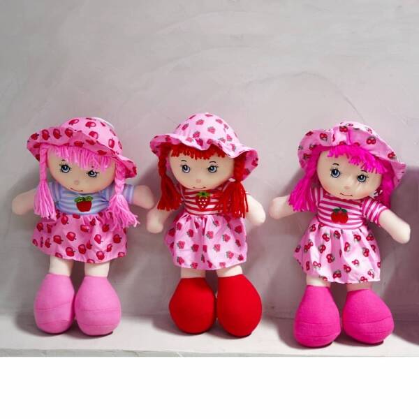 Muñeca de tela tamaño 35 cm, color fucsia. Suave y ligera, ideal como regalo, decoración o compañera de juegos. Fabricada con materiales de calidad para mayor durabilidad y comodidad.
