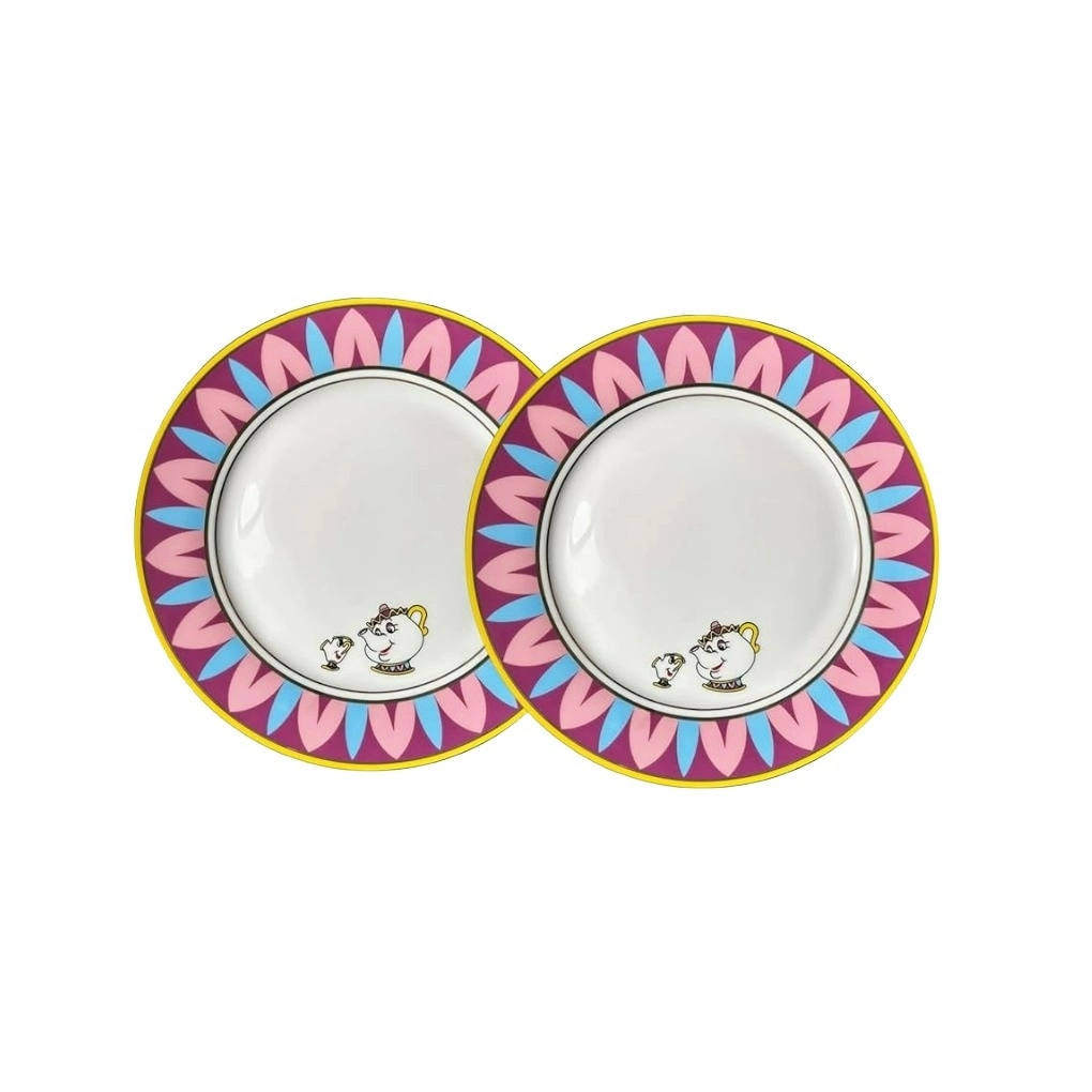 Este plato cerámico estilo Chip y Sra. Potts combina colores vibrantes y un diseño inspirado en personajes animados clásicos. Su borde en tonos rosa, azul y amarillo le da un acabado llamativo y elegante, perfecto para sumar un toque mágico a tu cocina, comedor o estantería. Es resistente, de excelente calidad y funciona tanto como pieza decorativa como para meriendas temáticas. Ideal para fans, coleccionistas o quienes buscan un regalo especial y original.