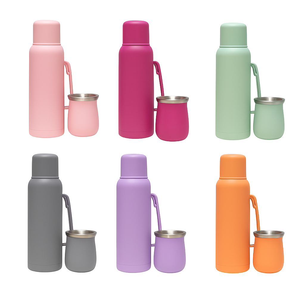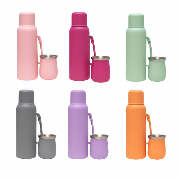 Termo con Mate de Acero Inoxidable 1L - Set Colores Pastel