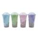 Vasos milkshake con tapa, colores vibrantes y diseños únicos.